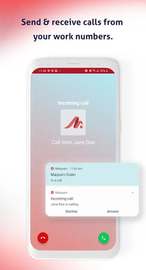 Download the Maqsam Android app to liberate your business phone and make global calls as if they were local. Send and receive calls through your dedicated international business phone numbers, dial or identify shared work contacts from your company and personal phonebooks, transfer calls on-the-go to other members of your team, change your availability at anytime and much more.