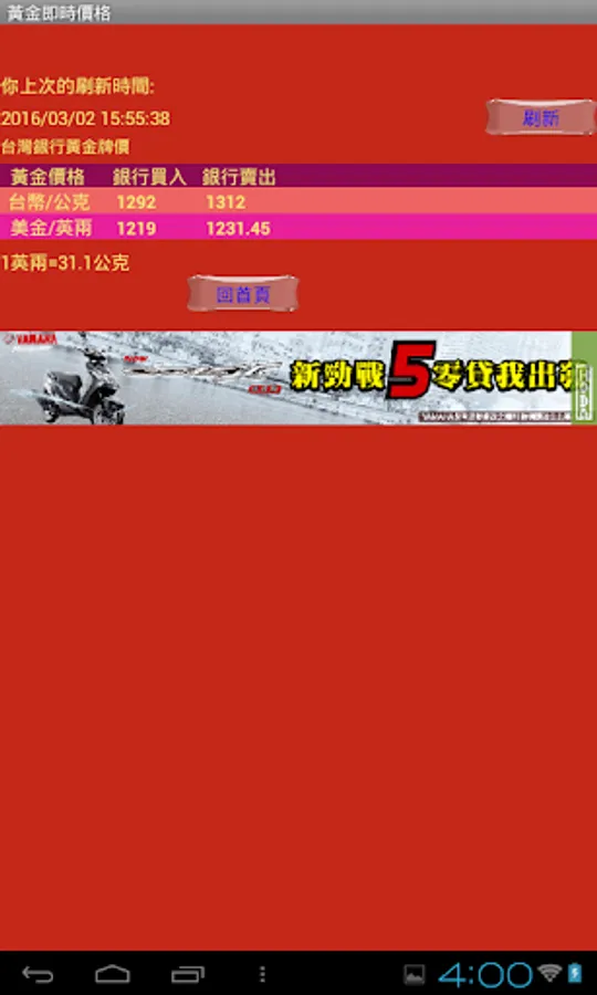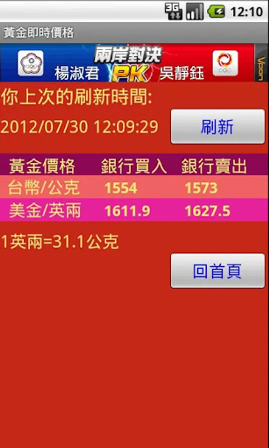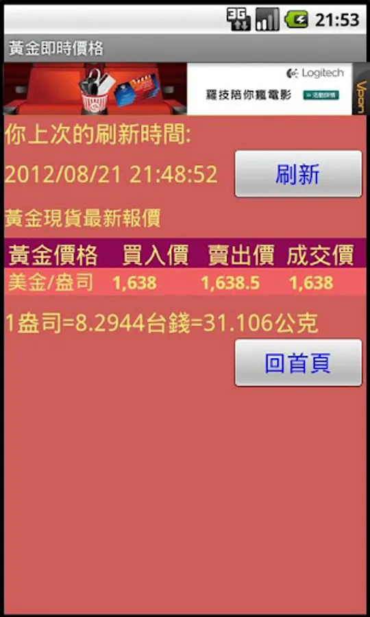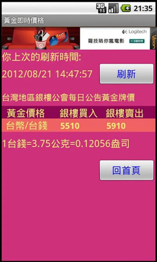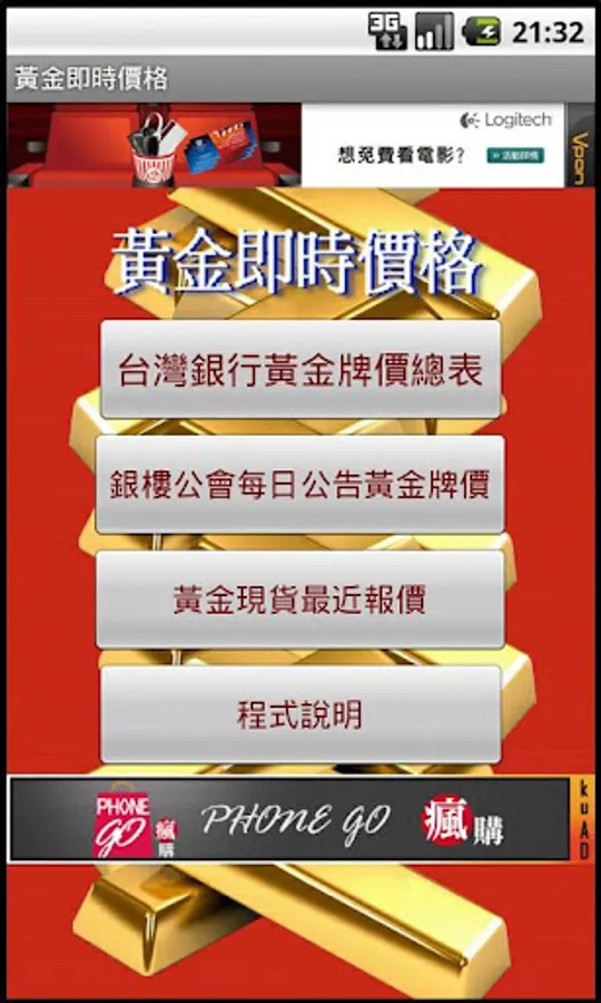 A simple program to easily query your phone to the latest real-time gold prices You manage a good helper.