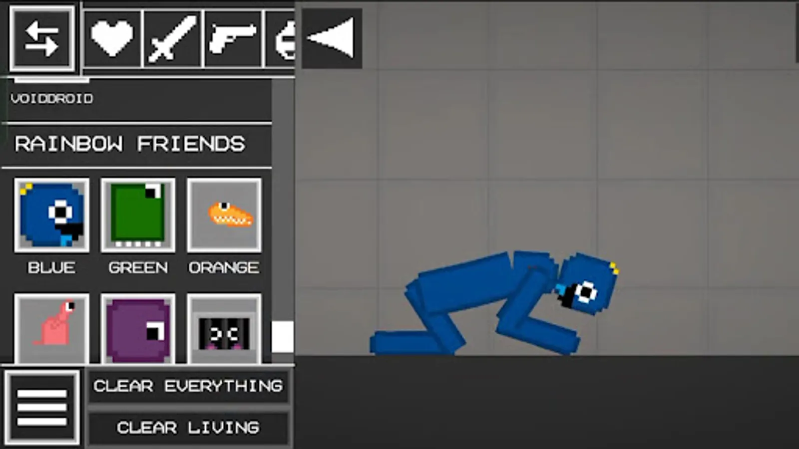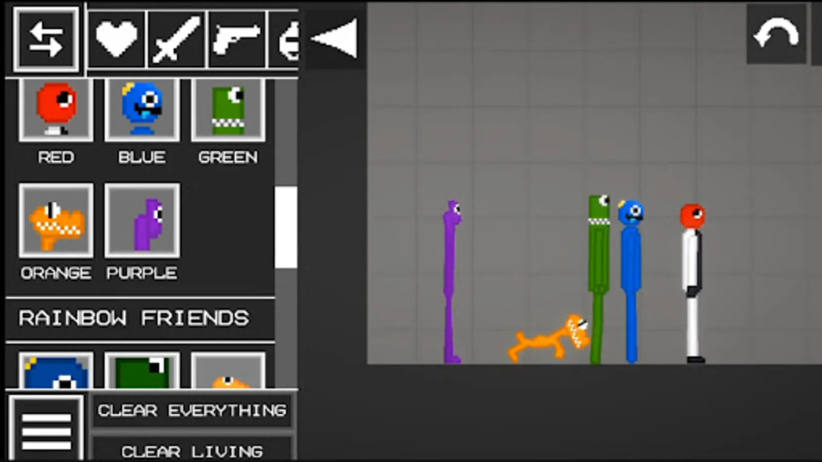 inside mod Rainbow Friends melon playground you can get full collection of Rainbow & Friends Mod