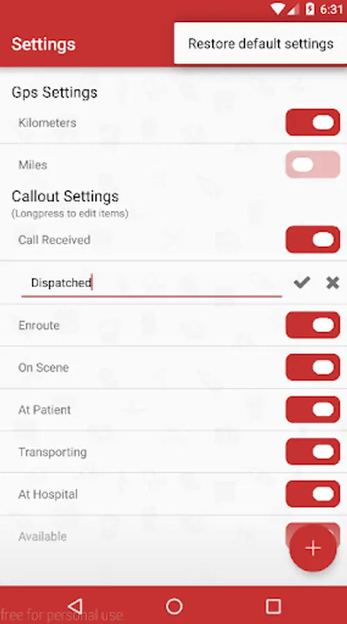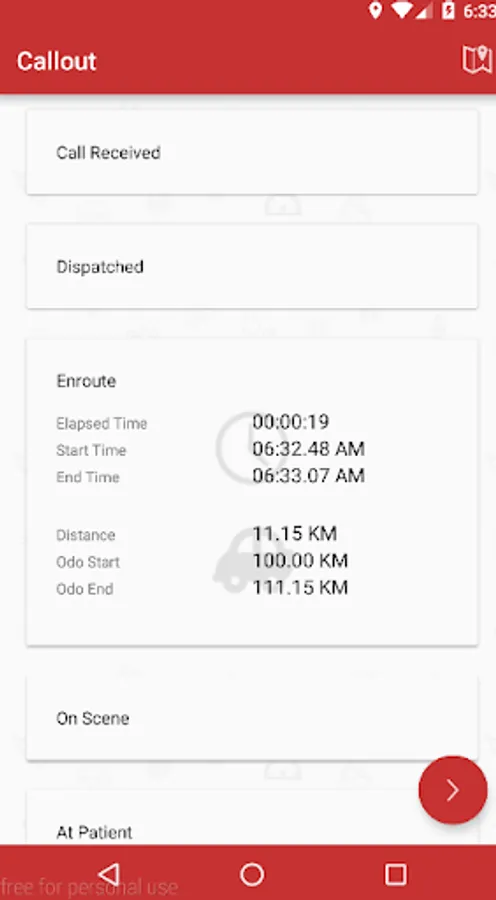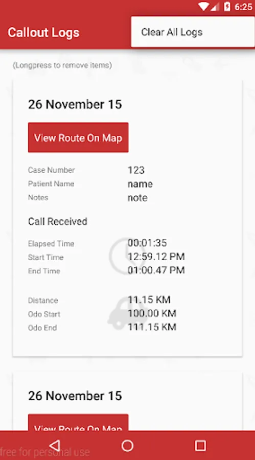 - Display saved call-out data, distance driven, route, time, date patient information.