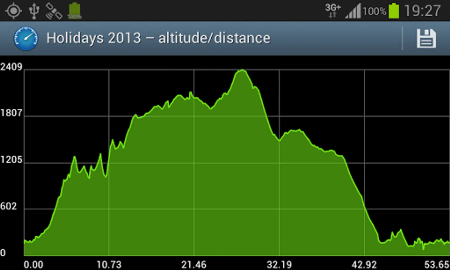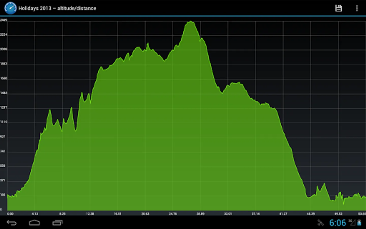 CycleDroid provides also a feature of drawing graphs: altitude/distance, speed/distance, speed/time. You can easily zoom in/out a graph using multi-touch. The application allows for saving a particular graph or its part as an image file.
