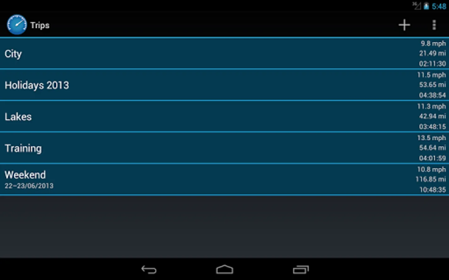 CycleDroid allows for tracking your movement using GPS and display parameters such as: speed, distance, time, altitude, elevation, slope, burned calories, fat and many more. A route can be shown on a map and published on Facebook. The application allows for creating trips and assigning collected data to a specified trip. There is also a possibility to see a summary of selected trips: total distance, time etc.