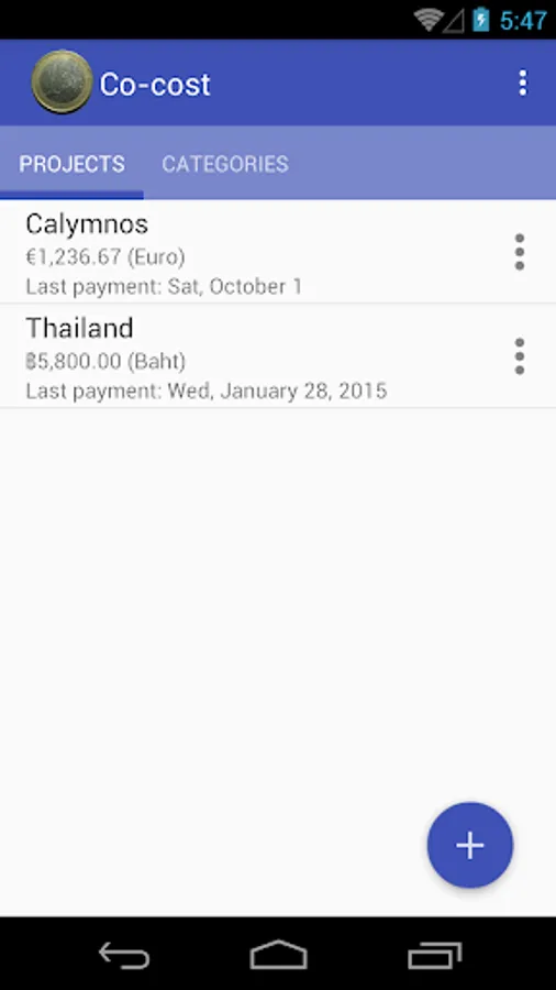 This app has restriction — creation more than one project or more than 50 payments are locked. You can unlock Co-cost with the in-app purchase.