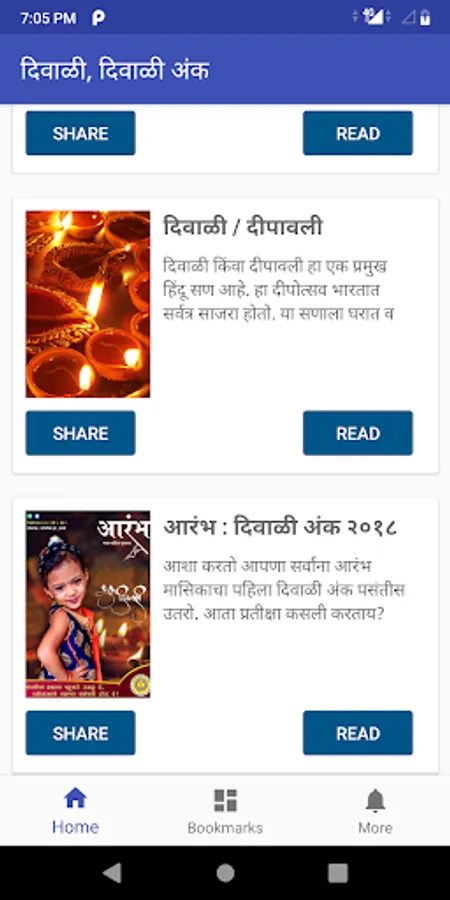 This app brings you information about the Hindu festival and a bunch of Diwali ank or magaazines, all in Marathi.