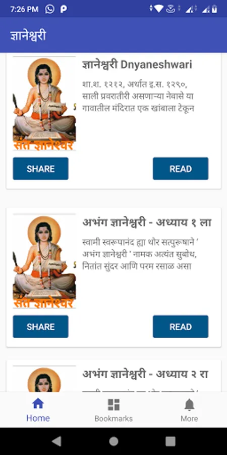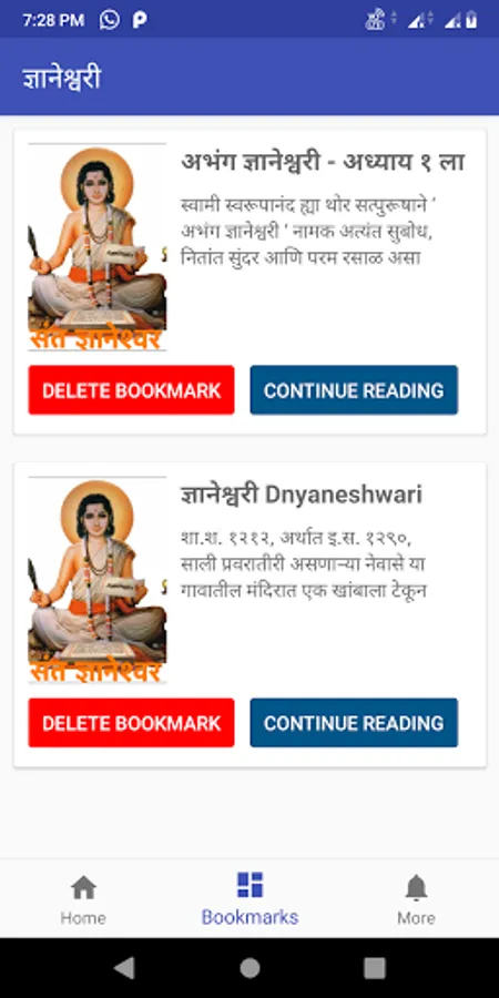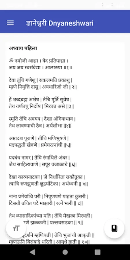 This app contains Dnyaneshwari written by Marathi Sant Dnyaneshwar and Abhang Dnyaneshwari by Swami Swarupanand.