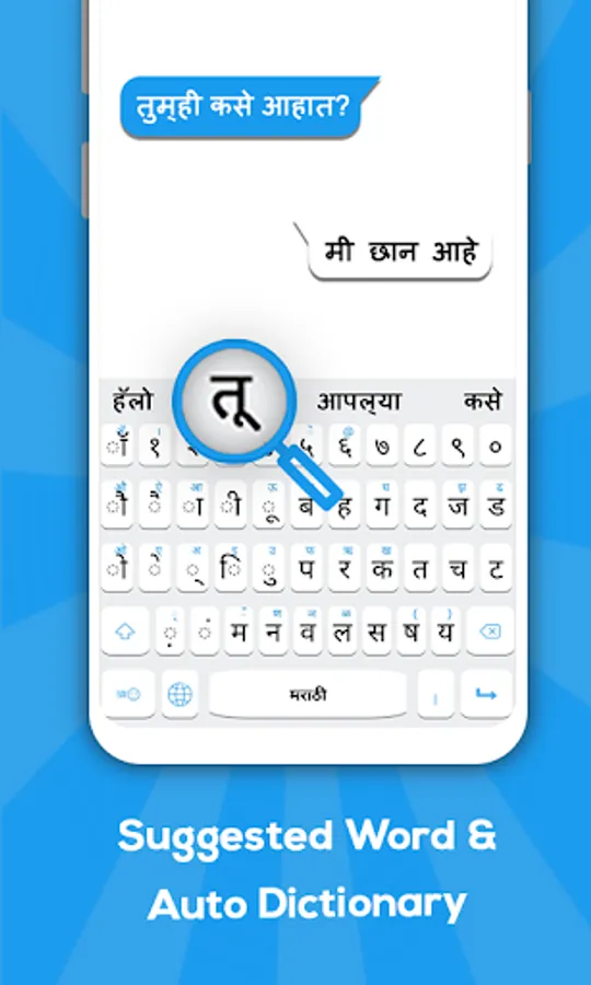Marathi Keyboard is best mobile Keyboard for typing in Marathi language. Marathi Typing Keyboard allows the user to write and type message in Marathi language and Marathi text words. Send message, email, and update status in Marathi.