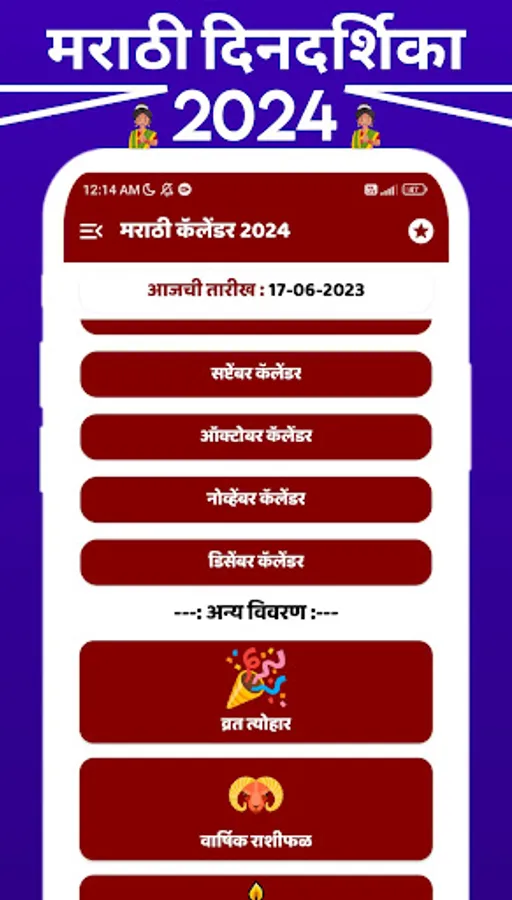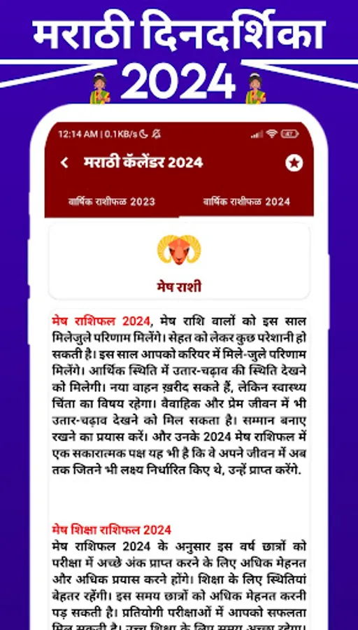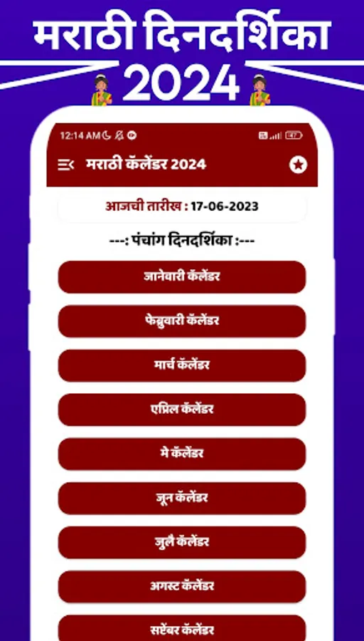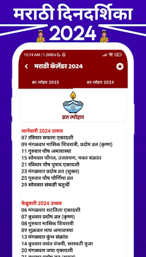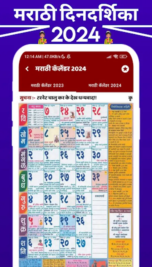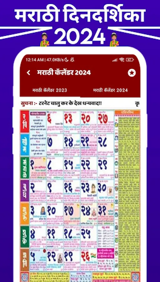 2024 मराठी कॅलेंडर - Marathi Calendar 2024 is offline calendar and free calendar app for all marathi speaking people. Free calendar almanac app for people from Maharastra (Also known as maharashtra calendar 2024).