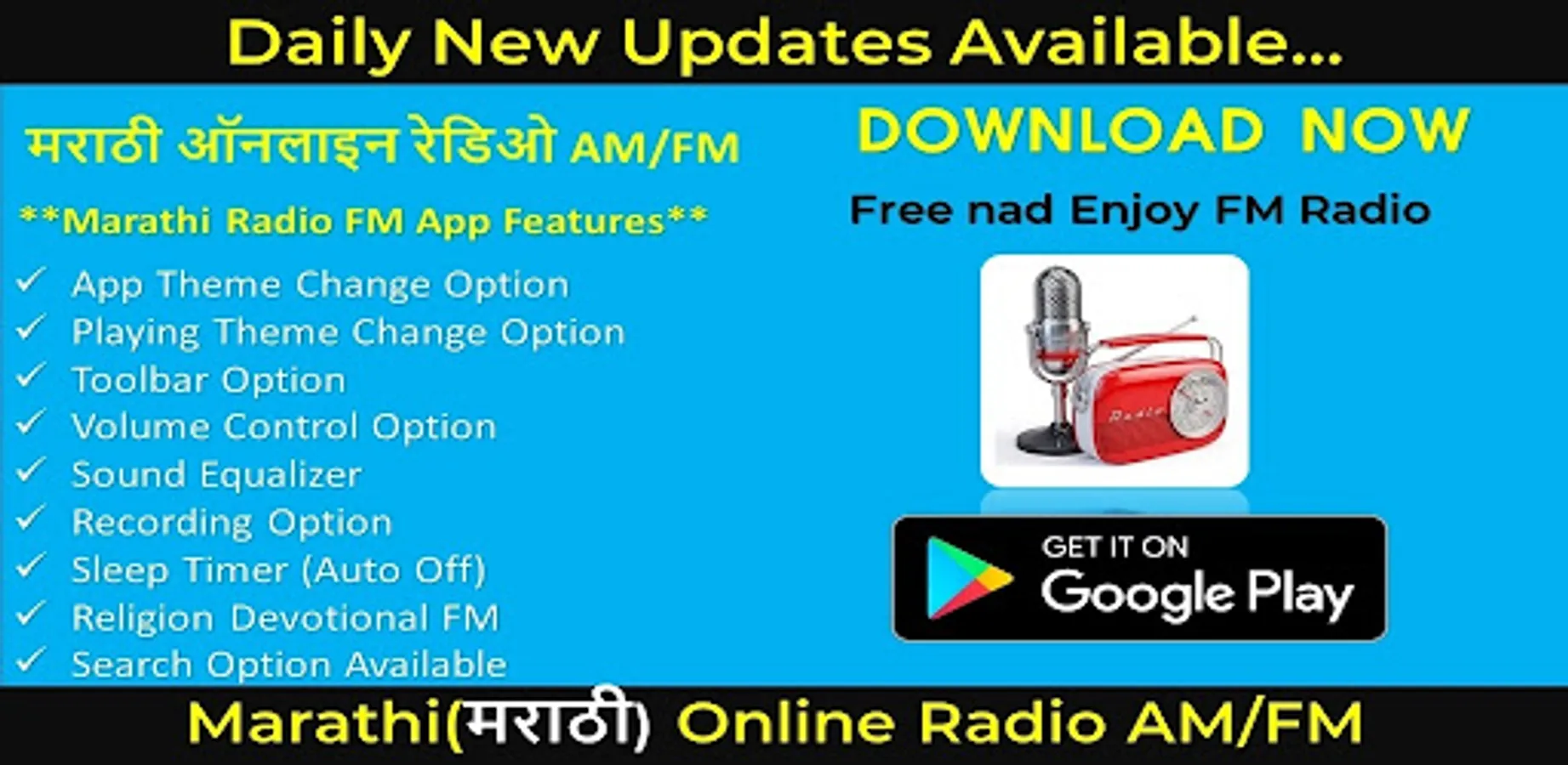 Radio Marathi Brings You The Best Online Radio Stations. This Is The Radio Application Where Everyone Can Listen Music And Audio, News, Talk, Comedy, Etc.