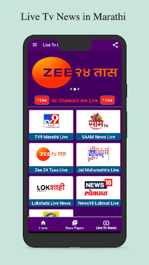 2. Marathi Live Tv News Disclaimer - This app hosts all the Live Tv Videos using YouTube data API and free to air channels.