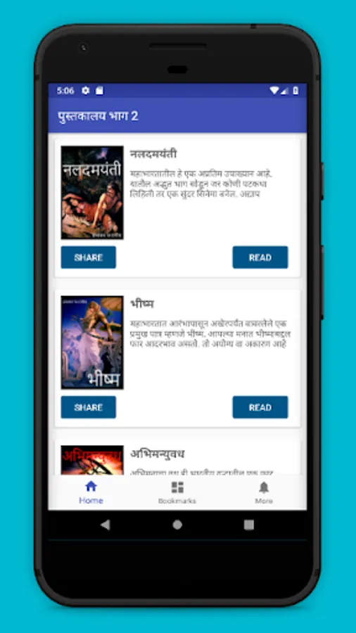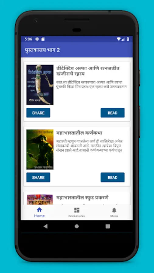 Read some of the most popular Marathi books in history on your mobile phone without the need of internet. This is a very simple app focused on Marathi story readers. It has got around 400 popular books which you can read even if you don't have an internet connection and wherever you go. You will find books which fall broadly under Mythology, Horror, Crime, Thriller and Fantasy.