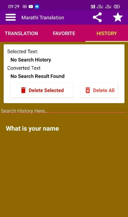 Also this app has Marathi typing system, you just need type in English and press space bar, it will auto suggest Marathi words, and later can be translated to English or Hindi.