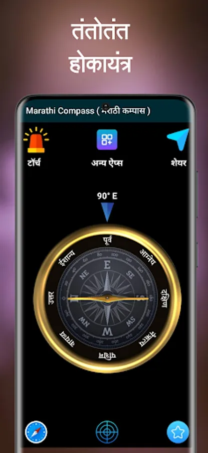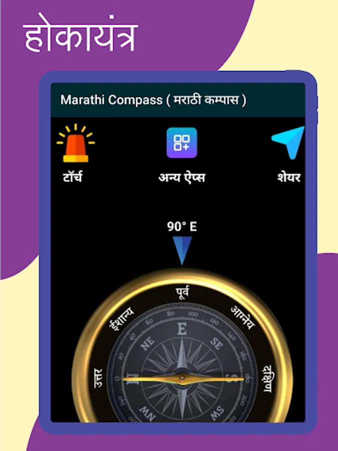 "मराठी कंपास" ही एक अद्यातनित, सुंदर आणि उपयोगी अॅप आहे. आपल्या मोबाइलवर आपल्या स्थानाची दिशा निर्दिष्ट करण्यासाठी आपल्या उपकरणाचा वापर करा. या अॅपमध्ये महत्त्वाच्या वैशिष्ट्यांमध्ये संपूर्ण मराठी भाषेत उपलब्ध आहे. सोप्या वापरासाठी सुंदर कंपास आयकनासह आपल्या मोबाइलवर वापरा. नक्कीच सुरूवात करा आणि आपल्या आवाजानुसार दिशा शोधा. सापडल्यास, मराठी कंपास आपल्याला सर्व सुरक्षित नवीन आणि अद्यातनित दिशा मार्गदर्शन करेल."