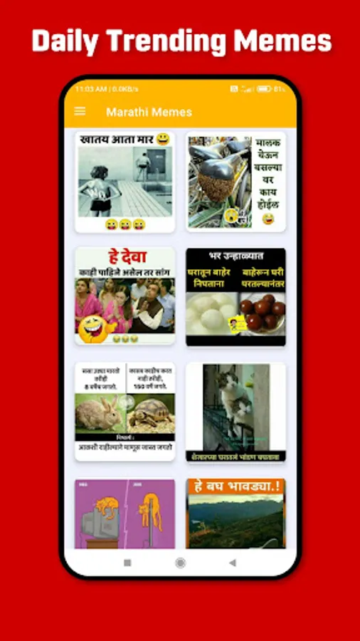 Marathi Memes is full Entertainment Application for Memes lovers. We Daily upload Best Marathi Memes, Trending Memes, Funny Marathi Memes, Latest Memes, Whatsapp Memes, IPL Memes, Jokes etc.