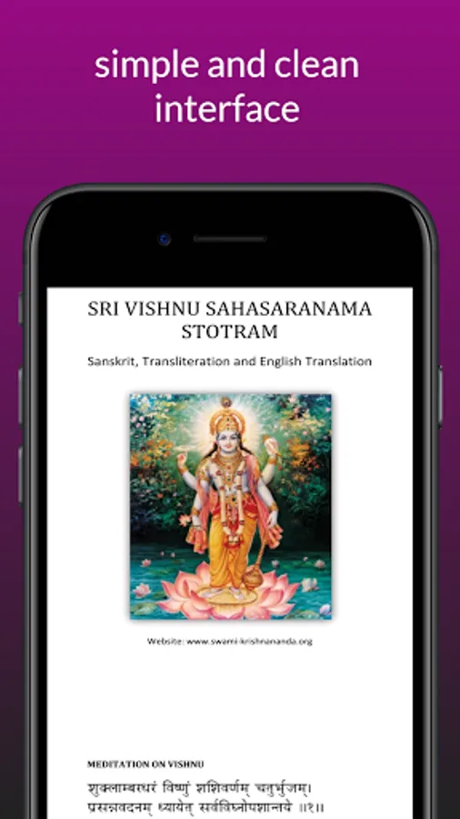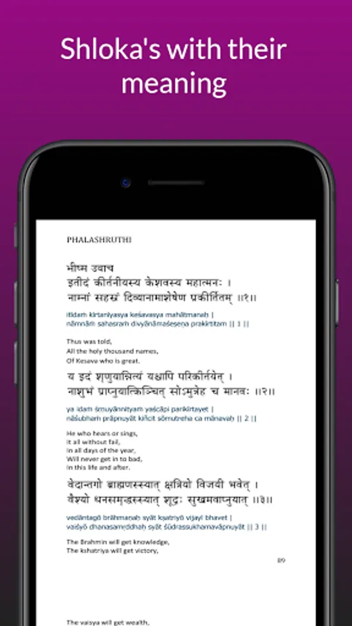 scholars. For attainment of spiritual liberation, one must involve himself/herself to the glories of the Lord Sri Mahavishnu, by reciting the entire slokhas.