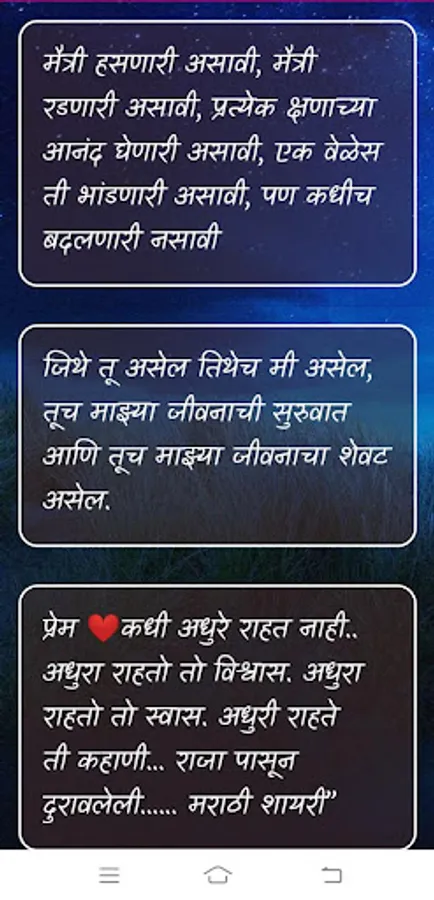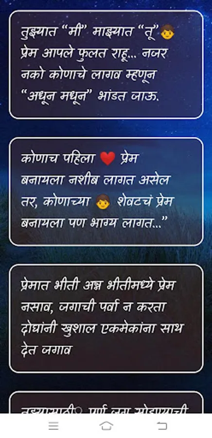 There are some more Marathi Love SMS, Marathi Love Quotes & Marathi Love Status in this app.