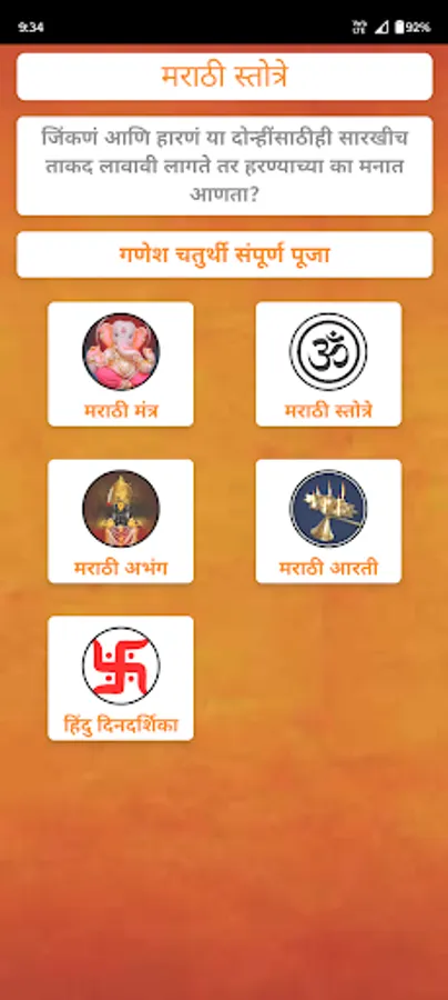 या अँप्लिकेशन मध्ये मराठी स्तोत्रे, मंत्र, अभंग, आरती संग्रह व हिंदू दिनदर्शिका आहेत