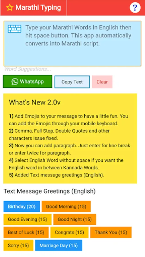 * Simply type Marathi words in English and hit/tap space button