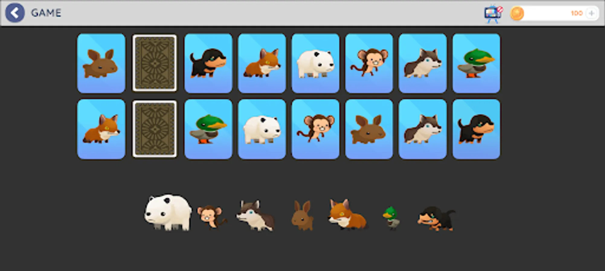 • Enjoy the matching game with cute animals.