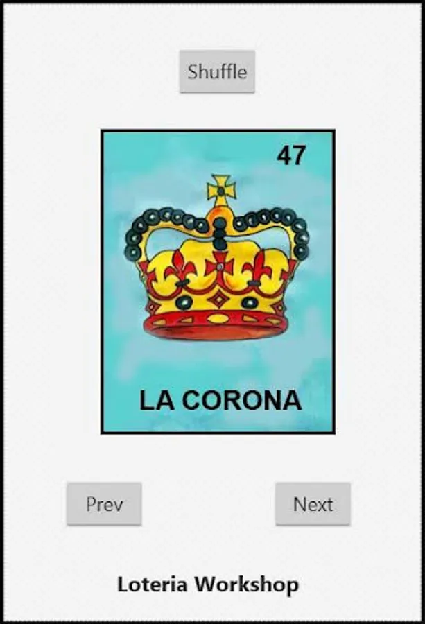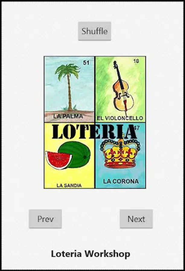 Easy to use just like a real paper card deck, it contains the 54 images included with Loteria Workshop.