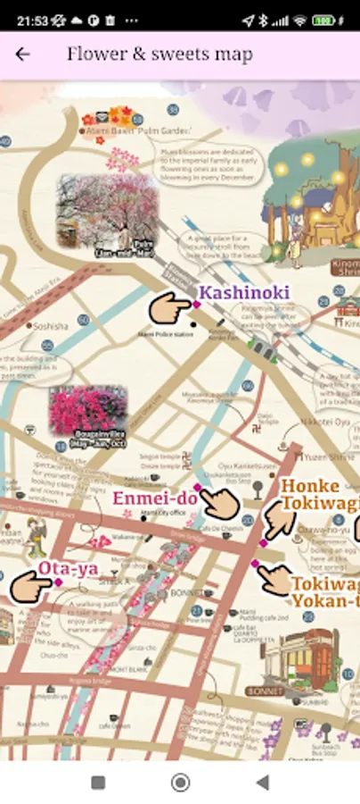 ・You can see contents such as flowers Sweets Map, Showa Retro Cafe Map, and Daidai(bitter orange) Gourmet.