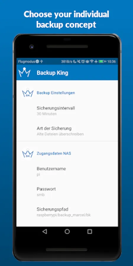 Backup King backups your data to a NAS in your local network. You will never lose important files again.