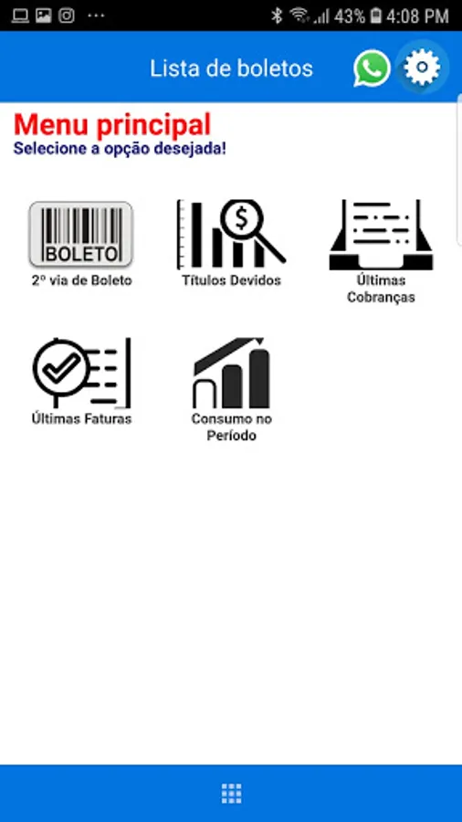 Water Tariff Management System directed to Irrigated Perimeters. Mobile module that gives access to consultation to the Financial Information of the Producers. 2nd of Boleto, 2nd copy of Account / Invoice, Debt, Latest Consumption, etc.