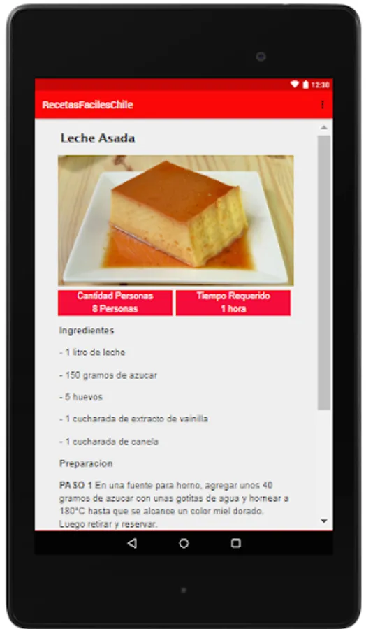 This application is created for people who love Chilean food and want to know how to prepare it. In the application, there are 6 categories: Tickets, Funds, Desserts, Drinks, Bakery and a Southern food item. In each category you can see the different recipes, which are detailed when selecting them. In each recipe you can see a final photo of the dish, the preparation time, the number of people who can enjoy the dish, the detail of the ingredients and the step by step. Little by little they will be adding more recipes with the collaboration of all of you and refining those already available with their experiences when implementing them.