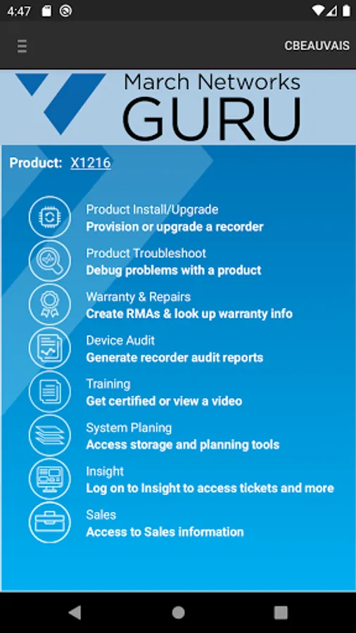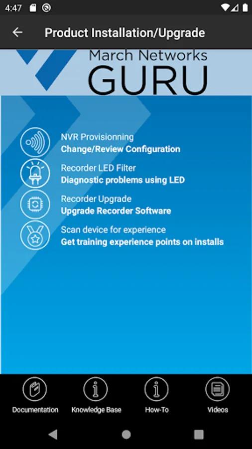The March Networks® GURU Smartphone Application delivers the insight and knowledge you need by putting advanced diagnostic information, tools and support right at your fingertips. With GURU, you’ll instantly have access to the collective brainpower of a virtual technical support team, with troubleshooting tips, video tutorials, RMA shipment status, warranty status, and much more.