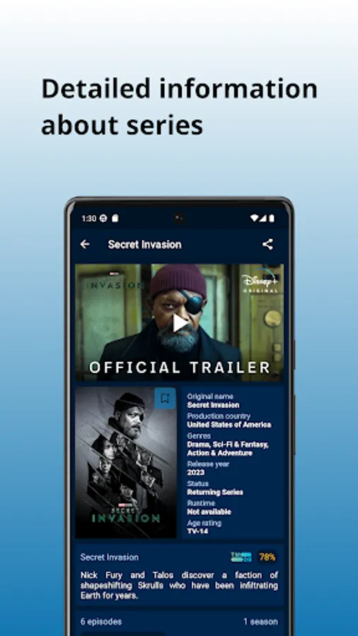 All the information about your favorite movies, series and actors, right in the palm of your hand.