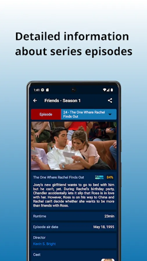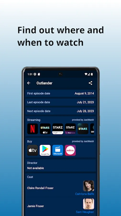 Quickly find synopses, cast, release dates, episodes, trailers, photos, ratings, and more.