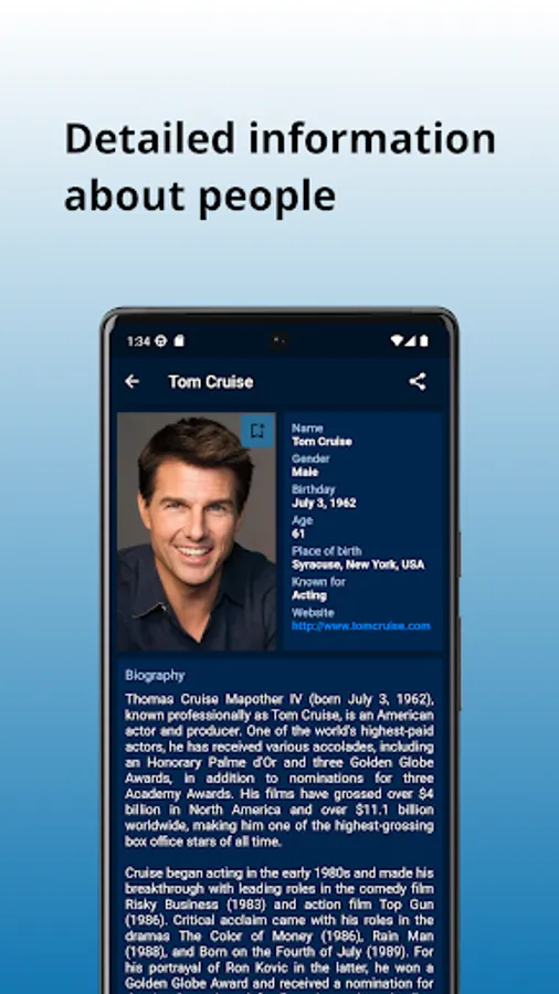 All the information about your favorite movies, series and actors, right in the palm of your hand.
