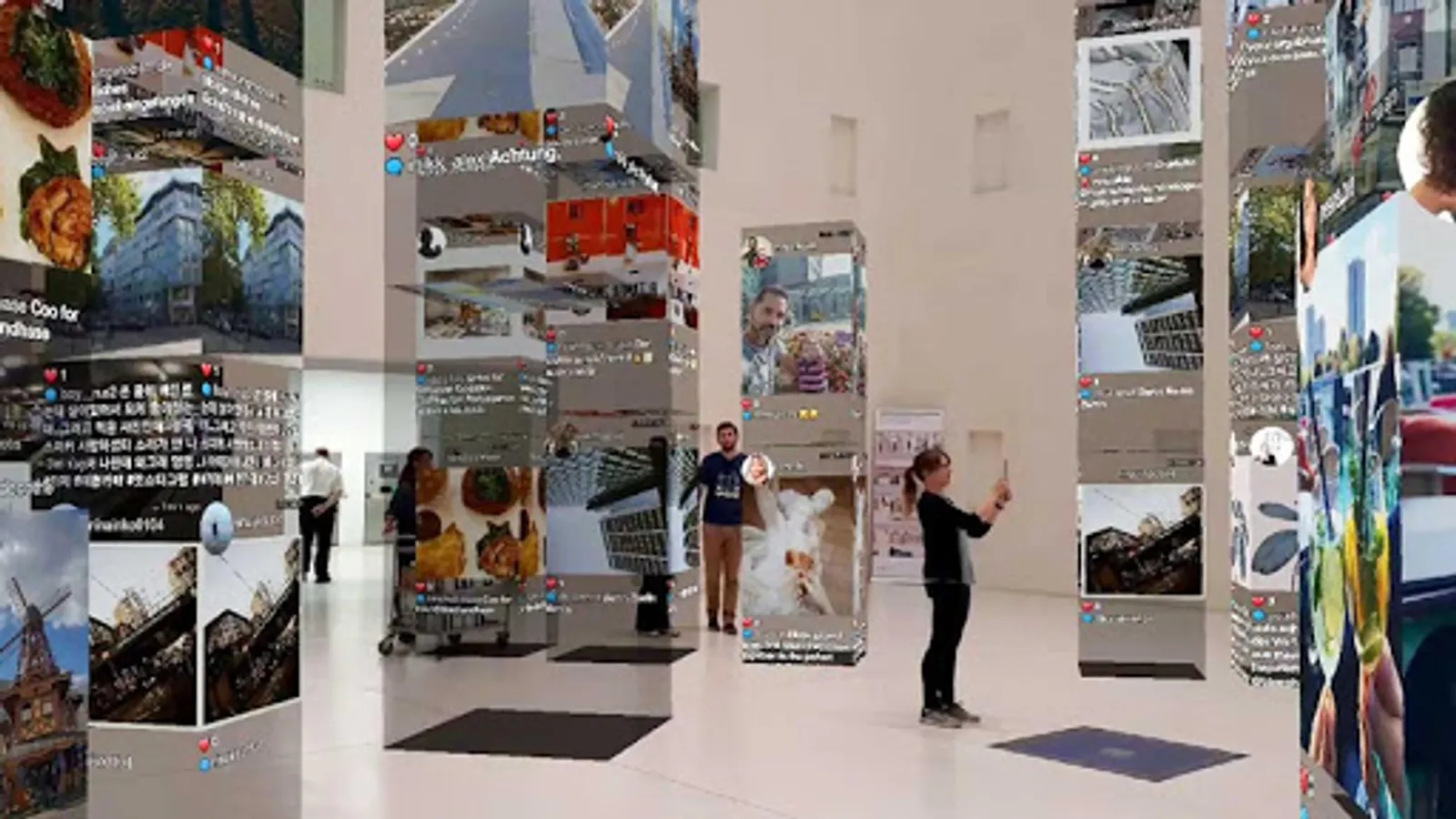 With the Multi User Augmented Reality App 10.000 Moving Cities – Same but Different, AR one moves between the imaginary buildings via smartphone and tablet and participates in the digital communication streams and social movements of our time by means of inserted Social Media Posts. The buildings can be destroyed and rebuilt by the users. But beware! Everyone sees what the other is doing from different perspectives. The more buildings disappear, the more creatures appear.
