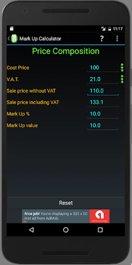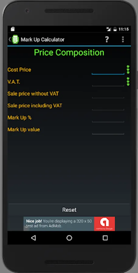 With this App, you can calculate the cost price, the Mark Up margin, the VAT and all components of the sale price in a simple and intuitive way.