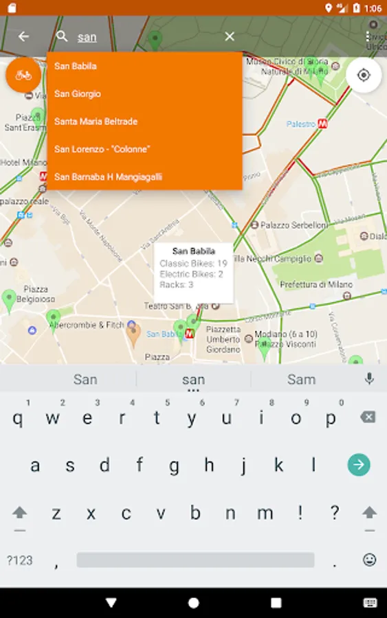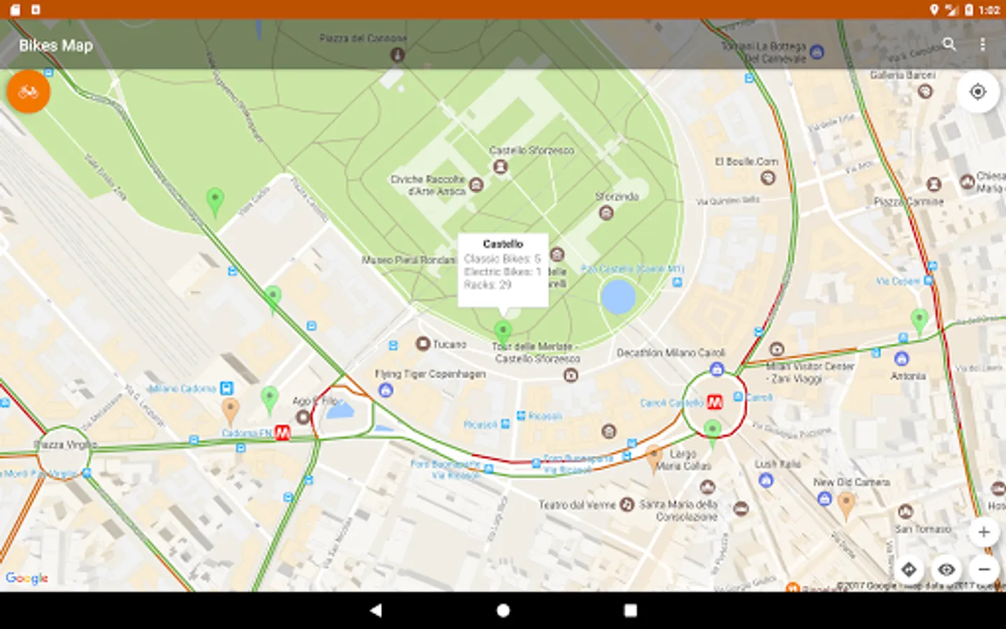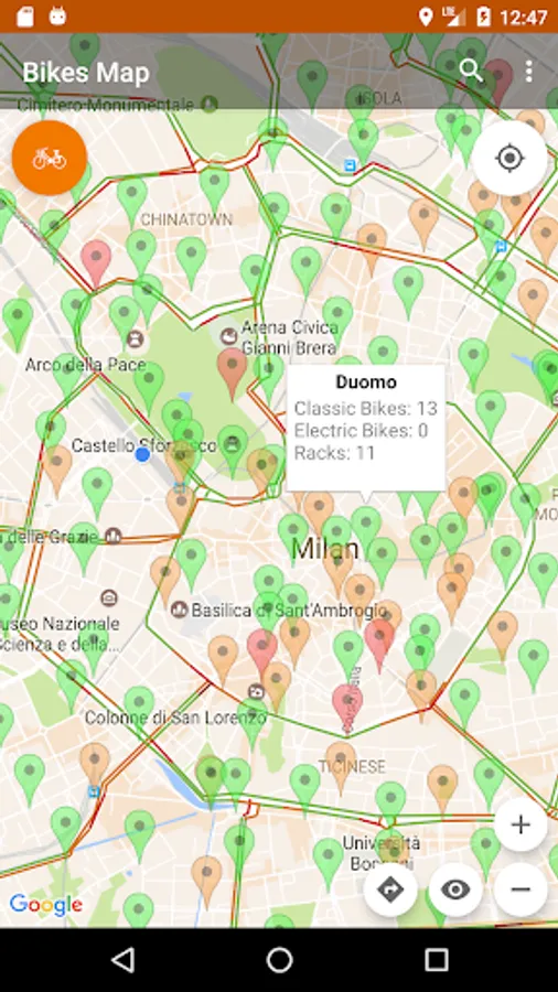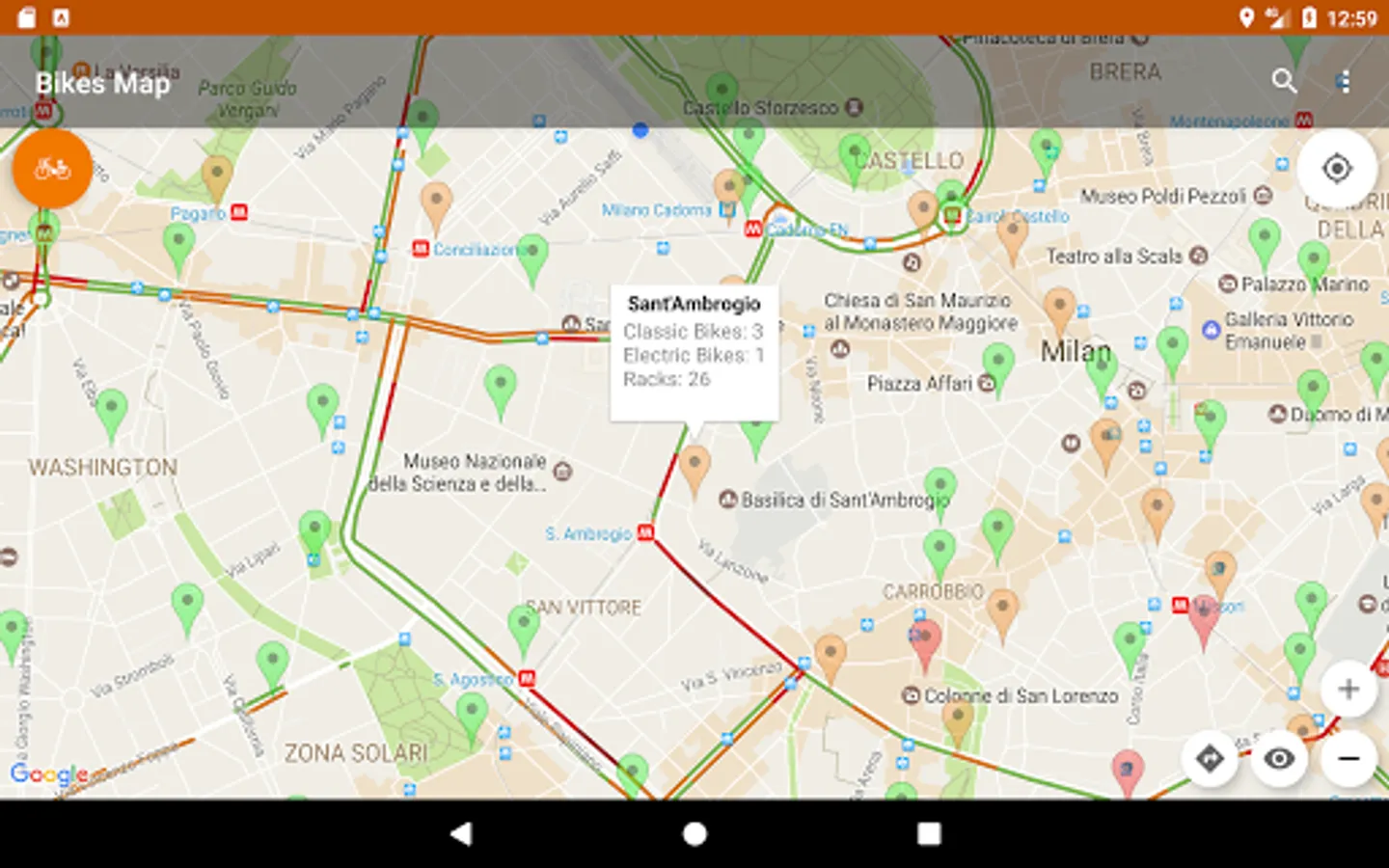 BikeMi Map lets you locate BikeMi stations and look at the number of available bikes and racks. Your GPS position is shown on map, so you can easily locate nearby stations.