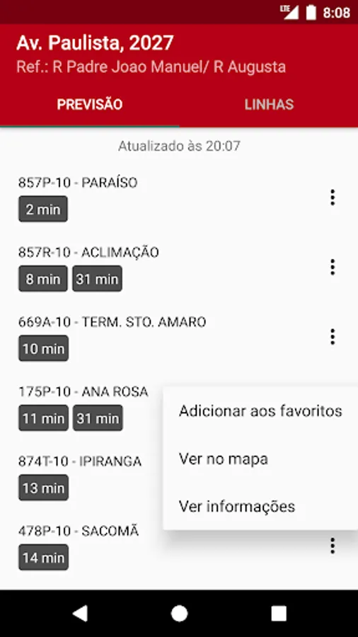 The application uses the information provided by Get Smart service SPTrans. Therefore, if there are problems with the location of the bus (bus fading, or that do not appear on the map), it is important to notify SPTrans so that the problem is corrected.