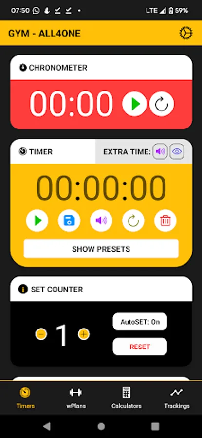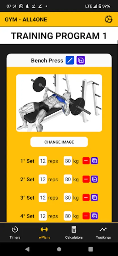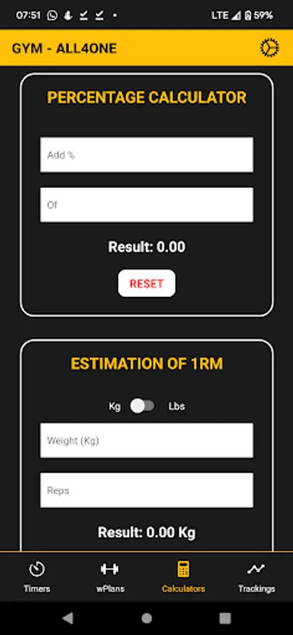 Maximize your workouts with the Gym - All4One fitness app: create custom workout programs, simple and interval timers, stopwatch, series counter, percentage calculator and 1RM estimation.