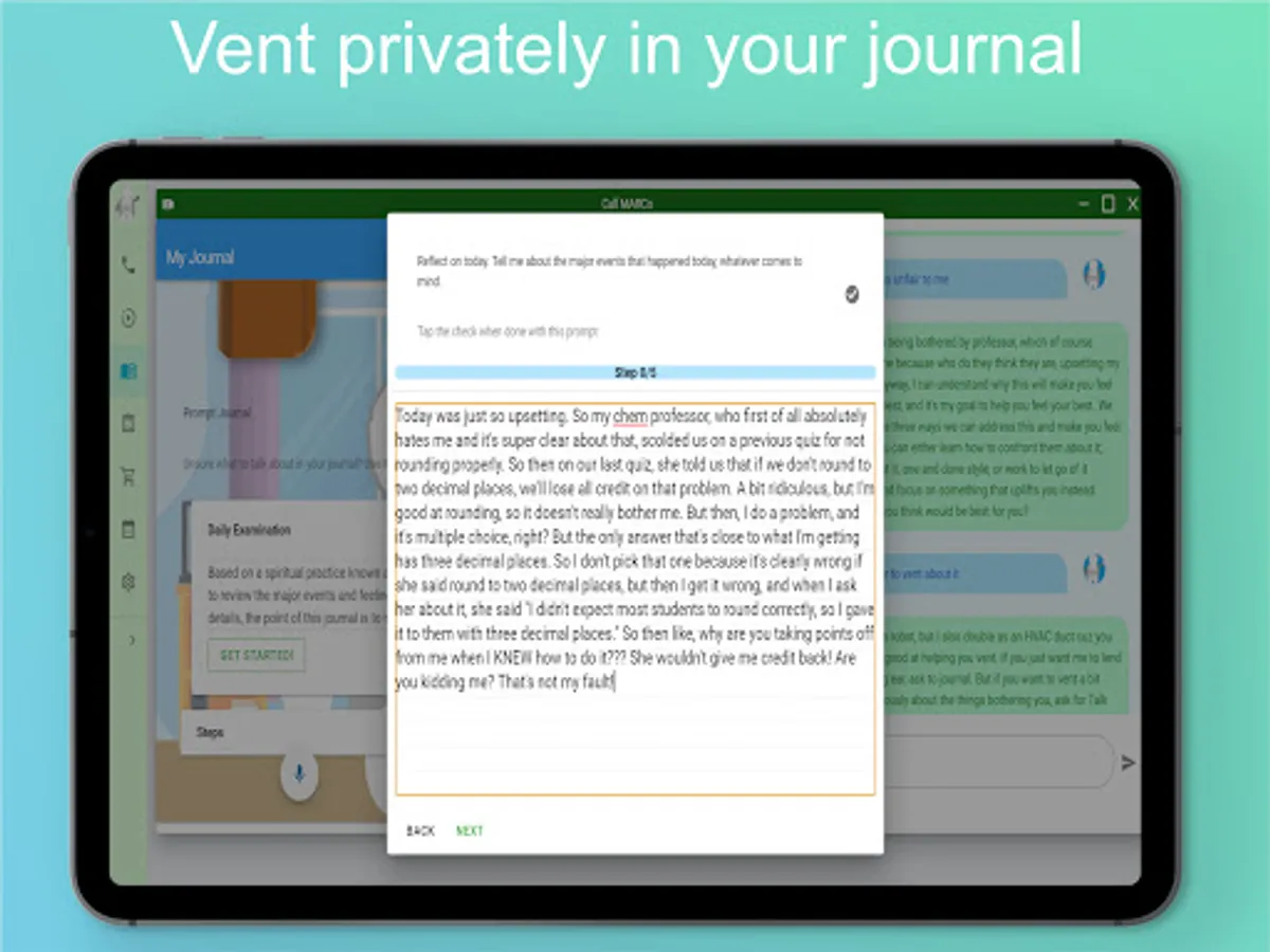 MARCo wouldn’t be much of a “Robot Companion” if this was not first & foremost! You can chat to MARCo or vent at length about anything you want in your own private journal the same way you would with a friend. No judgment here! MARCo will help you better understand your emotions based on what you say while giving you a safe and secure way of speaking your honest thoughts.