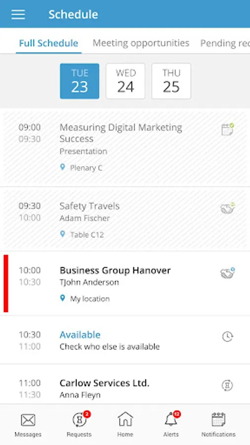 The Marcom Onsite app is an add-on solution to Marcom eSchedule PRO. It comes with a full schedule, program, networking/messaging, note taking, and last-minute appointment scheduling to fill in remaining gaps in participants schedule.