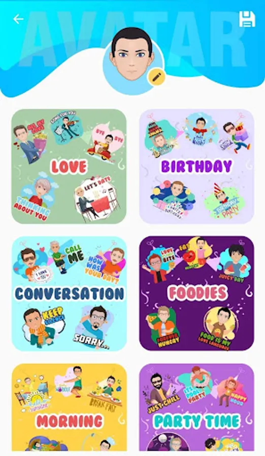 Additionally, app provide so many ready made template which can convert your created avatar to the sticker with suitable text . It will be so much fun.