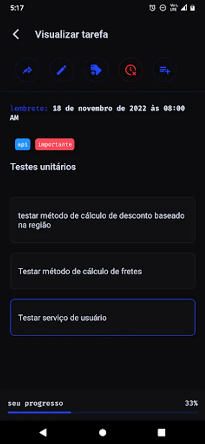 ao terminar o assunto marque como completo e veja seu progresso imediatamente.