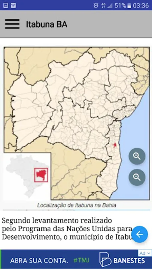 According to a survey carried out by the United Nations Development Program, the municipality of Itabuna presents the third best Human Development Index of the State of Bahia, behind only the capital of Bahia, Salvador, and the municipality of Lauro de Freitas.