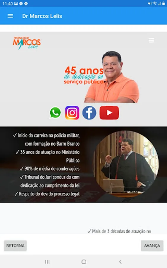 With a few taps you can, in addition to knowing who Dr Marcos Lelis is, follow his activities, access his social networks, watch some videos without data consumption and also receive notifications about news. Currently working as a Lawyer.