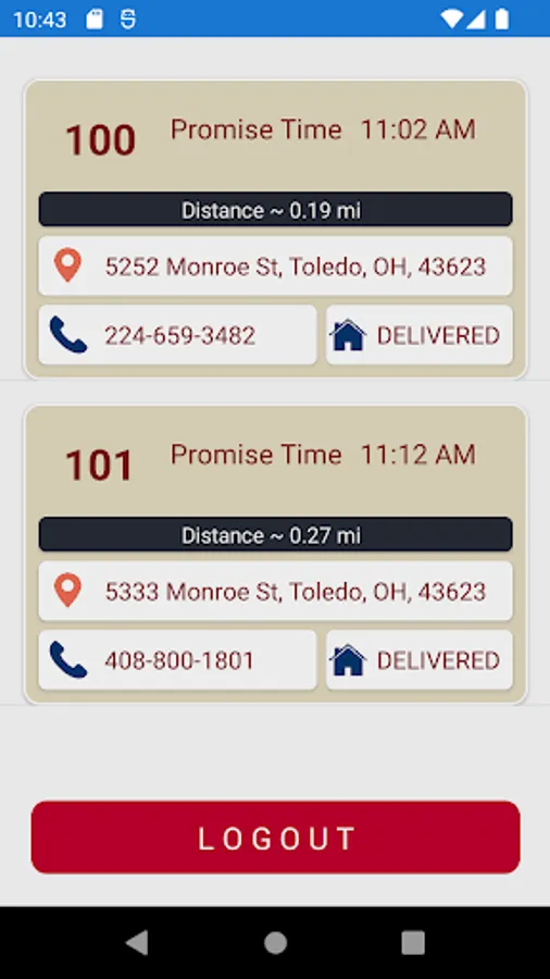 This mobile app is part of the cutting edge MOMS POS system. View a list of your assigned deliveries, click on the address for a map and directions. The app will calculate the distance and the estimated time of arrival for your delivery. This valuable tool helps the manager forecast return times and efficiently dispatch drivers. Once delivered click on the Delivered button to update the restaurant the order is complete.