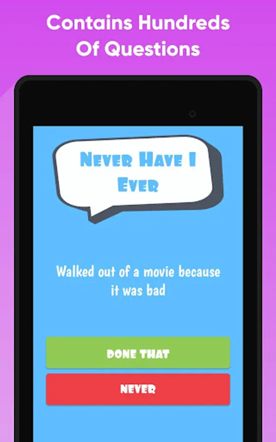 ✔ Hundreds of both clean and dirty Never Have I Ever questions