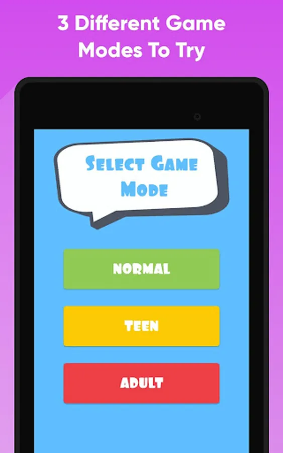 ✔ 4 different game modes - Normal, Teens, Couples and Adult (18+ with extreme, naughty and dirty questions). Normal game mode is perfect for playing with the family or teenagers.