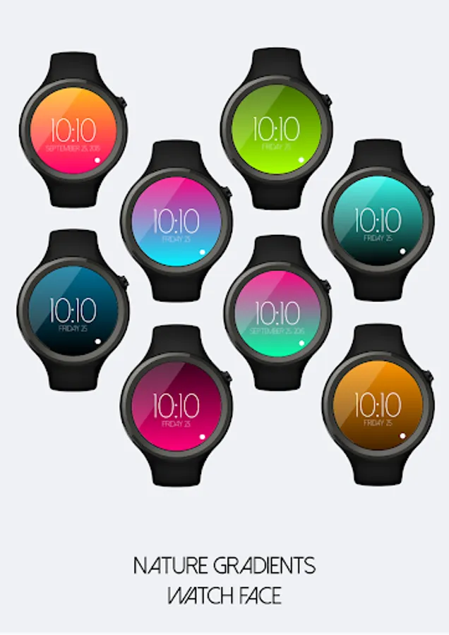 This watch face has a clean and simple design to focus on the fantastic gradients.