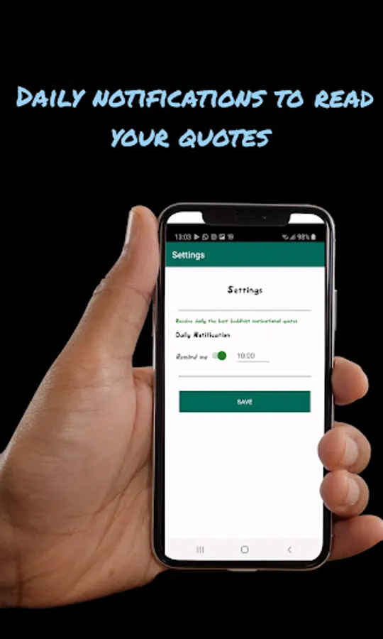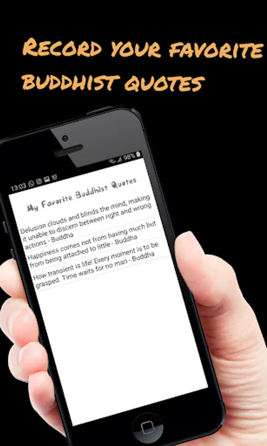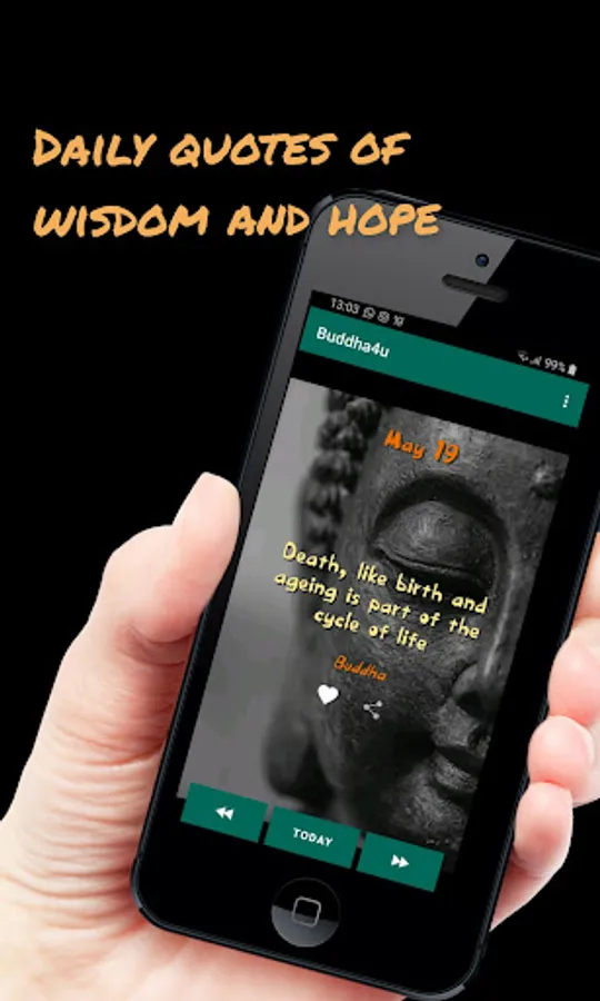 The most inspiring buddhist quotes to enlighten your day. On Buddha4U, you can meditate, and listen to relaxing music anytime and anywhere. Receive daily notifications to read your Buddhist quotes. Save your favorite quotes to access them anytime. Read random quotes. Share Buddhist quotes with your friends.
