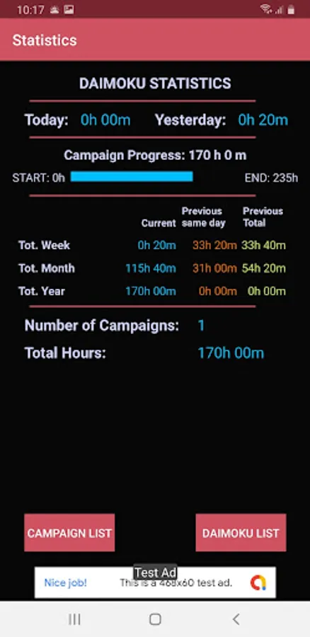 - Displays progress bar to make it easier to view your performance in the campaign (how much of Daimoku you have accomplished and how much is missing);