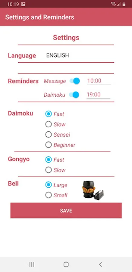 - Daimoku audio speed options: fast, slow, Sensei and Beginner;