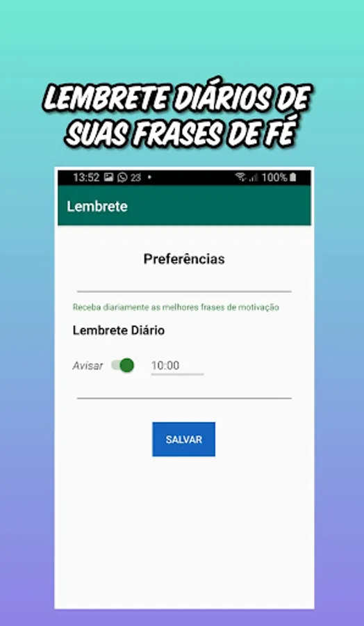 4) Daily reminder for the time you want;